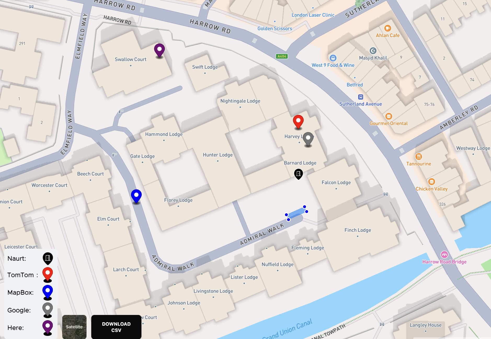 Take historical delivery jobs. Use the previous successful delivery location as the ground truth. Then compare how close each geocoder gets to that real-world point across a sample of addresses.